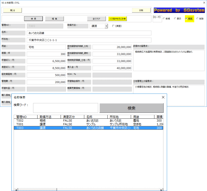 それとスタッフがこれを利用することにより日頃から不動産の価格に対する認識を深めてもらうことです。そして、事前事前に相続対策を積極的に実施していくための管理システムです。 |