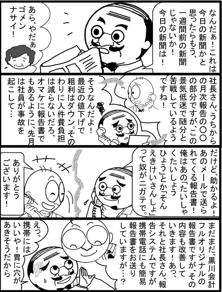 とにかく、私たちの事務所独自のシステムをひとつでも増やしていく、そして黒川会計のオリジナリティーでの差別化を実施する。これの繰り返しです。 |