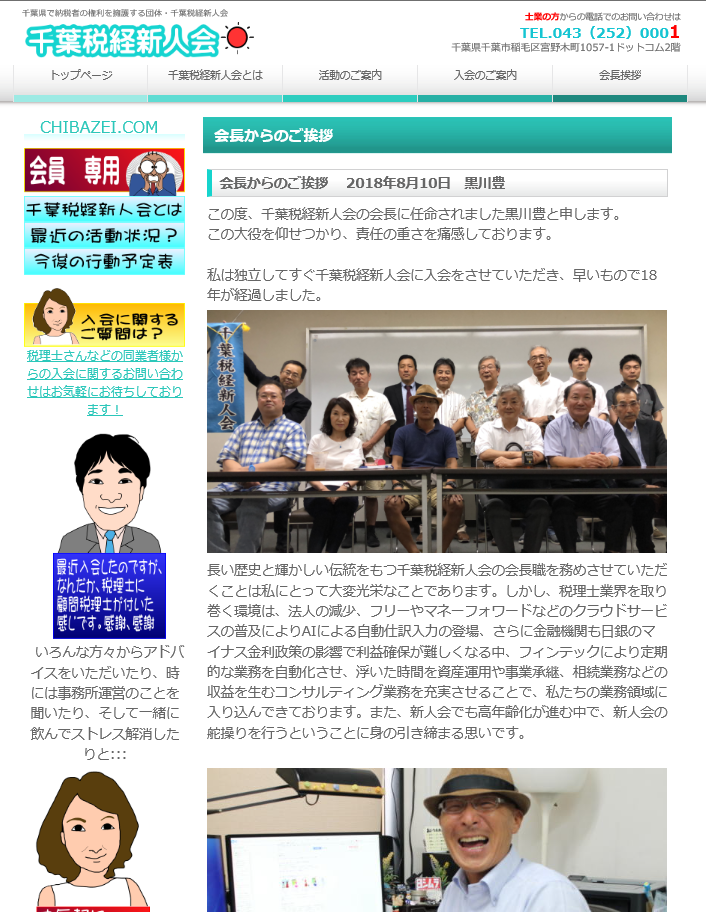 千葉税経新人会の会長を仰せつかり二期目となりますが、自分で会長という言葉を使うことは、もしかしたら初めてか二度目です。自分では会長などという言葉は使いませんし、会員同士のメールのやり取りでも黒川先生などですから、本当に名義貸しのような立場でございます。そんな私の二期目の役割を簡単にご紹介させていただきます。