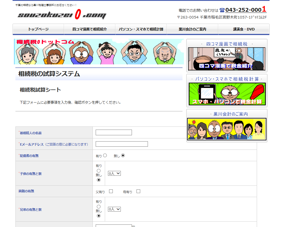 現在、WEB上の公開をしたのが、当社の顧問先様限定での相続税試算サービス用の入力シートです。もちろん、100%フルオリジナルですよ。