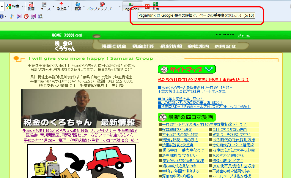 税金のくろちゃんのサイトですが、以前はGoogleページランクは「5」だったのですが、しばらく「4」の状態でした。