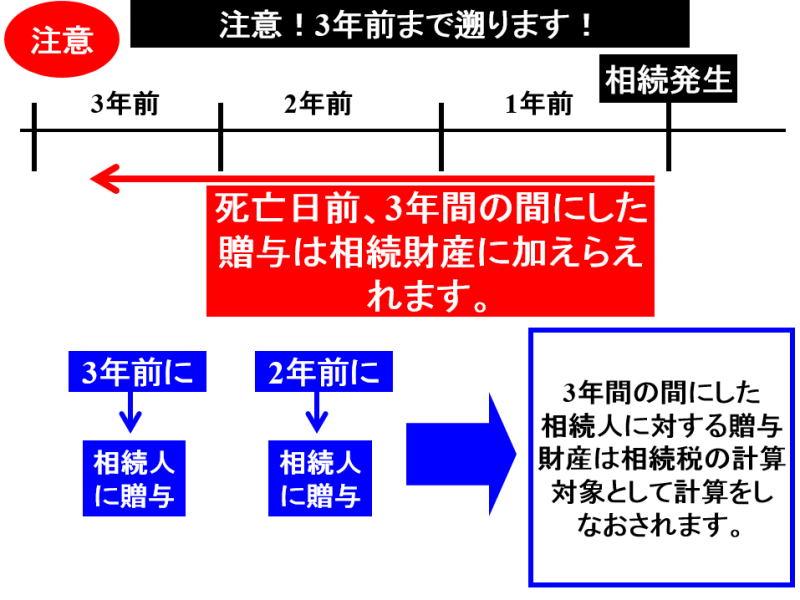 被相続人(死んだ人)から死亡前”3年以内”に贈与により取得した財産