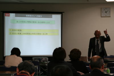 平成24年11月28日「税務調査のルール」講演会のワンシーン(倒産防止掛金の説明)